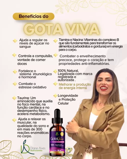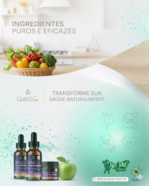 Com sabor leve e refrescante de menta, o Gota Viva é ideal para quem busca praticidade e resultados reais em uma versão líquida de rápida absorção.