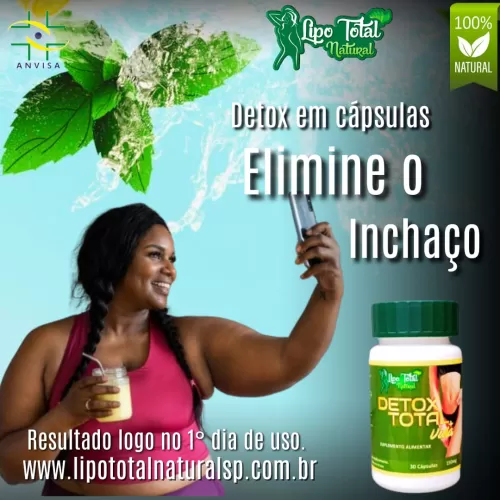 Detox Total em Cápsulas é um suplemento natural cuidadosamente formulado para promover uma desintoxicação completa do corpo, ajudando a eliminar toxinas e revitalizar o organismo. Com uma combinação potente de ingredientes naturais como ameixa, berinjela, laranja, sene, aveia, feijão branco, linhaça dourada, Garcinia cambogia, colágeno, beterraba, uva, maracujá e linhaça marrom, Detox Total auxilia na limpeza do sistema digestivo, melhora o metabolismo e contribui para a perda de peso saudável, proporcionando mais energia e bem-estar.