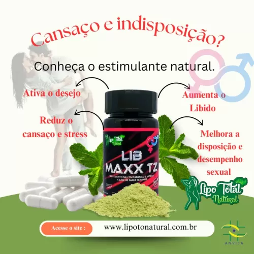 LIB MAXX TZ é um suplemento natural e poderoso, desenvolvido para homens e mulheres que desejam aumentar a libido, melhorar o desempenho e elevar os níveis de energia física e mental. Sua fórmula é composta por extratos altamente concentrados de Maca Peruana, Tribulus Terrestris, Catuaba, Guaraná, Ginseng e Mucuna, ingredientes tradicionalmente utilizados para fortalecer a vitalidade, equilibrar os hormônios e promover o bem-estar geral.